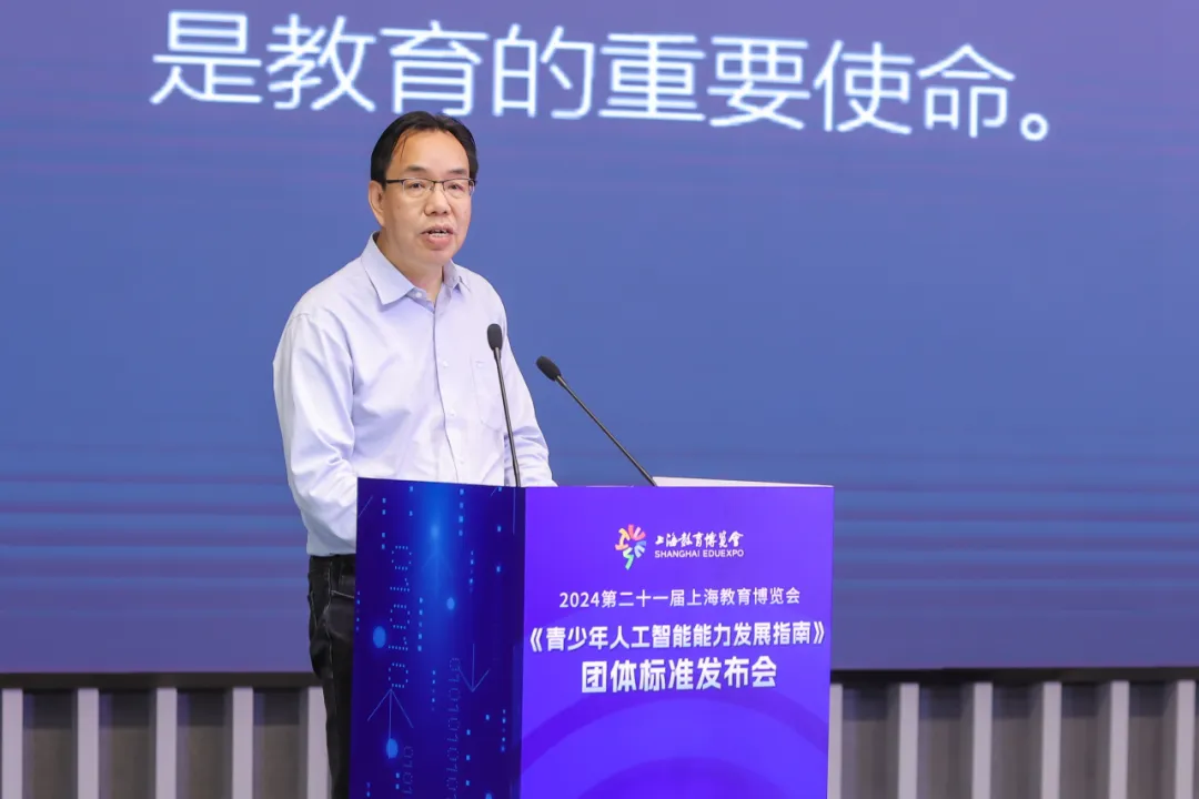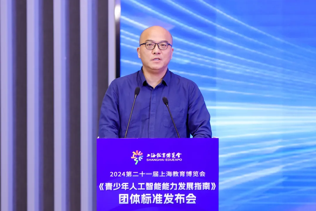 710公海寰宇(中国)机器人有限公司官网院长郑军奇,上海教育报刊总社副社长徐勇,上海市人工智能标准化技术委员会副秘书长、上海人工智能行业协会标准研究部部长陈曦分别上台致辞,对参与标准制定的所有高等院校、科研机构和企事业单位表示感谢,对团体标准的发布表示支持与祝贺,并对青少年人工智能教育的未来发展表示殷切的期望。