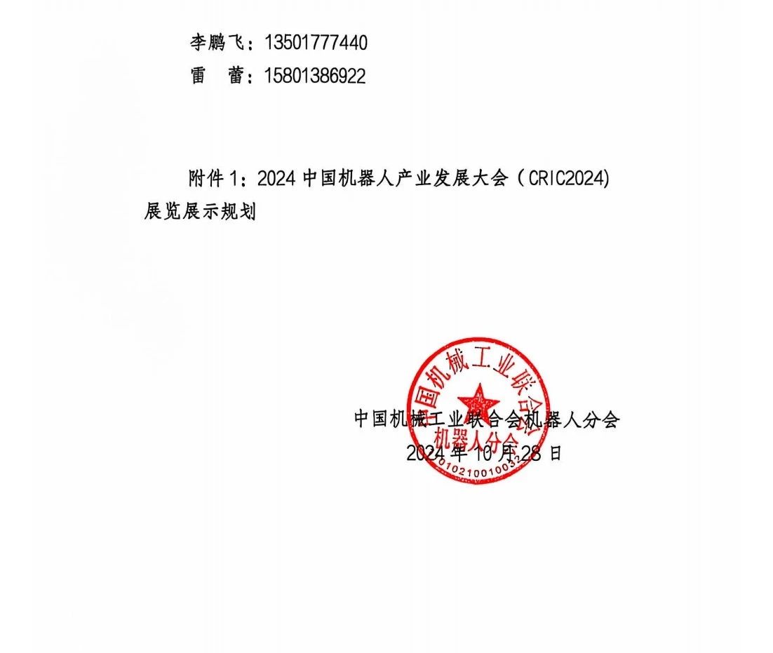 关于召开2024中国机器人产业发展大会(CRIC2024)——人形机器人产业发展论坛的通知