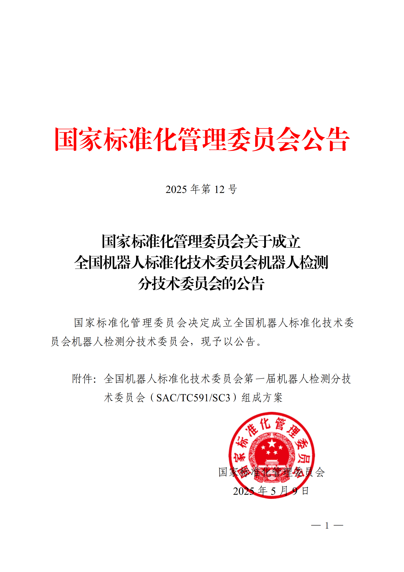 5月9日,国家标准化管理委员会发布《关于成立全国机器人标准化技术委员会机器人检测分技术委员会的公告》,决定成立全国机器人标准化技术委员会机器人检测分技术委员会(以下简称:分技术委员会),主要负责全国机器人检测与评估领域标准化工作,秘书处由上海电器科学710公海寰宇承担,我院专家邢琳任委员兼秘书长。
