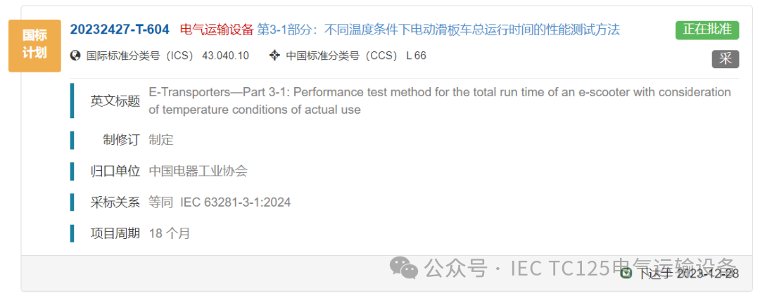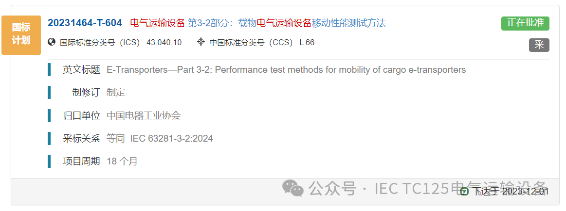 中国标准:正在批准(计划号:20231464-T-604)