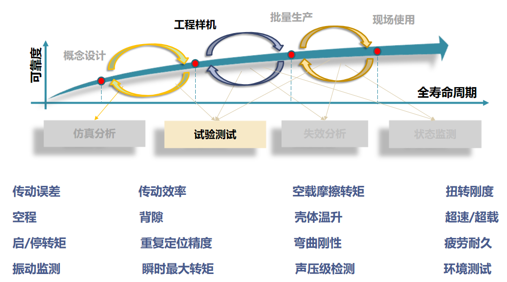 开展可靠性研究需要通过可靠性试验来获取数据,通过减速器可靠性试验设备及其试验技术,反应减速器产品性能表现,加速暴露减速器的相关故障,进而分析提出有针对性的改进建议和措施,是实现机器人用减速器的可靠性增长,对加快国产机器人减速器技术革新,提升国产机器人减速器市场竞争力具有重要的意义。