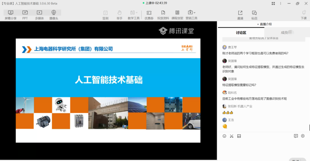8月18日-8月19日,上海电器科学研究所(集团)有限公司举办的《人工智能技术基础》(第一期)专业课顺利开班。
